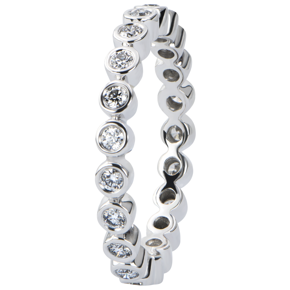 A paved wedding ring with 21 diamonds on a closed setting. An incomparable brightness, inspired by the delicate light reflected by the morning dew drops. 21 diamonds : 0.44 carat - White gold (18K Gold = 750/-): 2.9 g. More dimensions