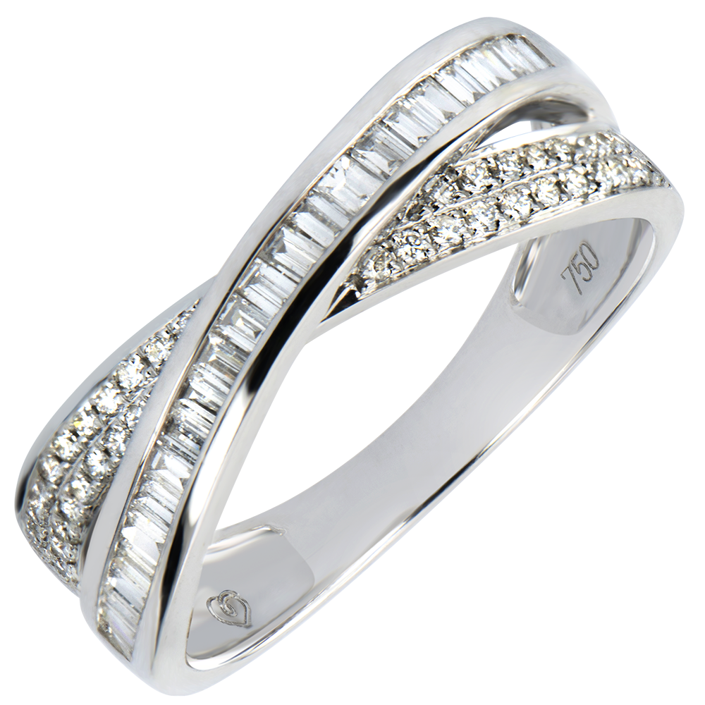 The perfect match of two rings, enhanced by brilliant and baguette cut diamonds pave setting.