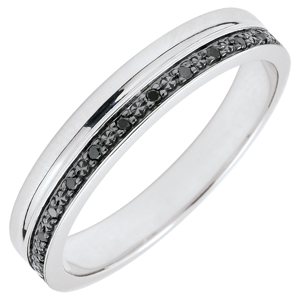 Elegance Wedding ring - White gold and black diamonds - 9 carats
