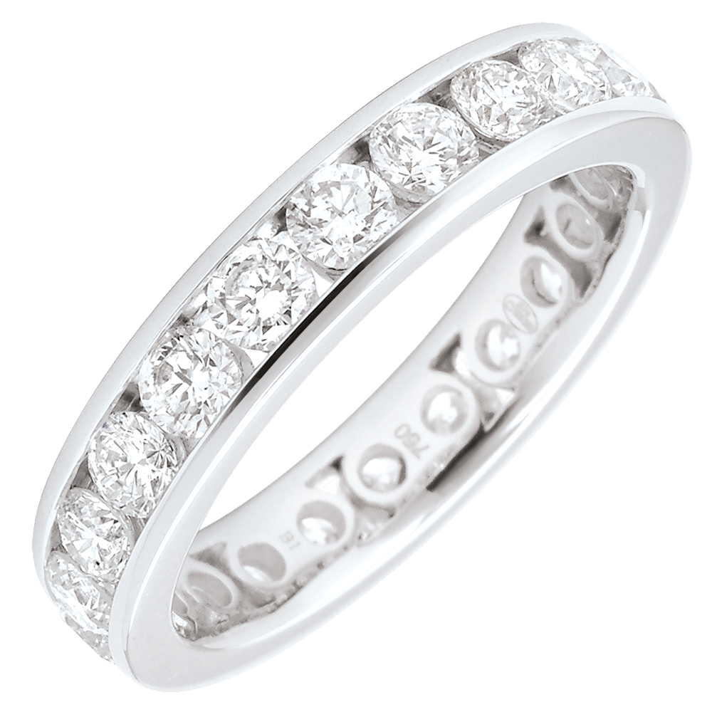 The perfect balance of a white golden ring paved with 23 round diamonds set on rails for a strong symbolism. A must jewel.