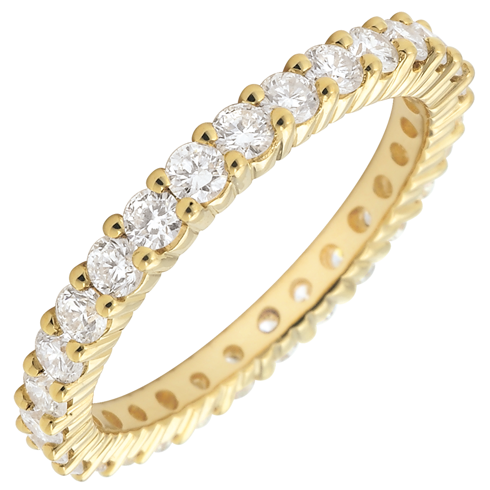 The perfect balance of a yellow golden ring paved with round diamonds on a prong setting for a strong symbolism. A must jewel.