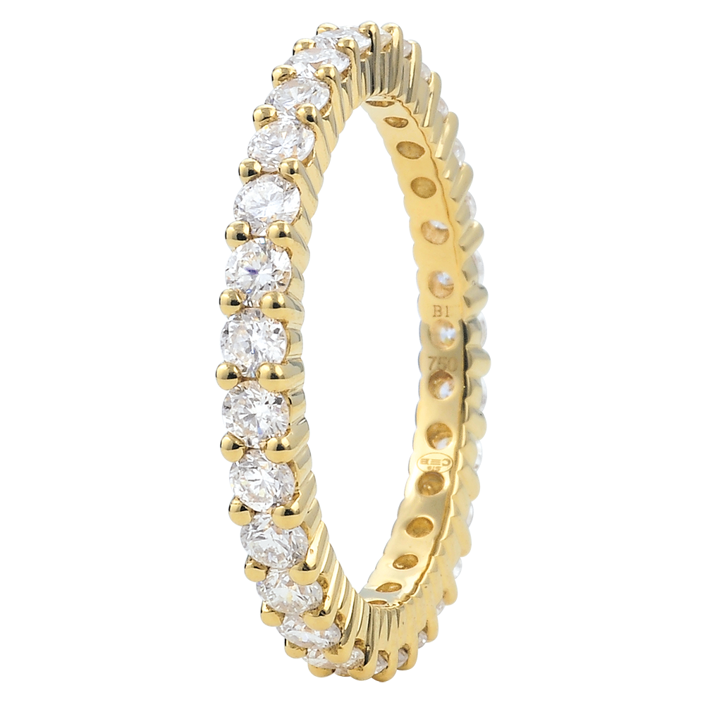 Weddingring yellow gold paved - prong setting - 1.11 carat - Complete Round