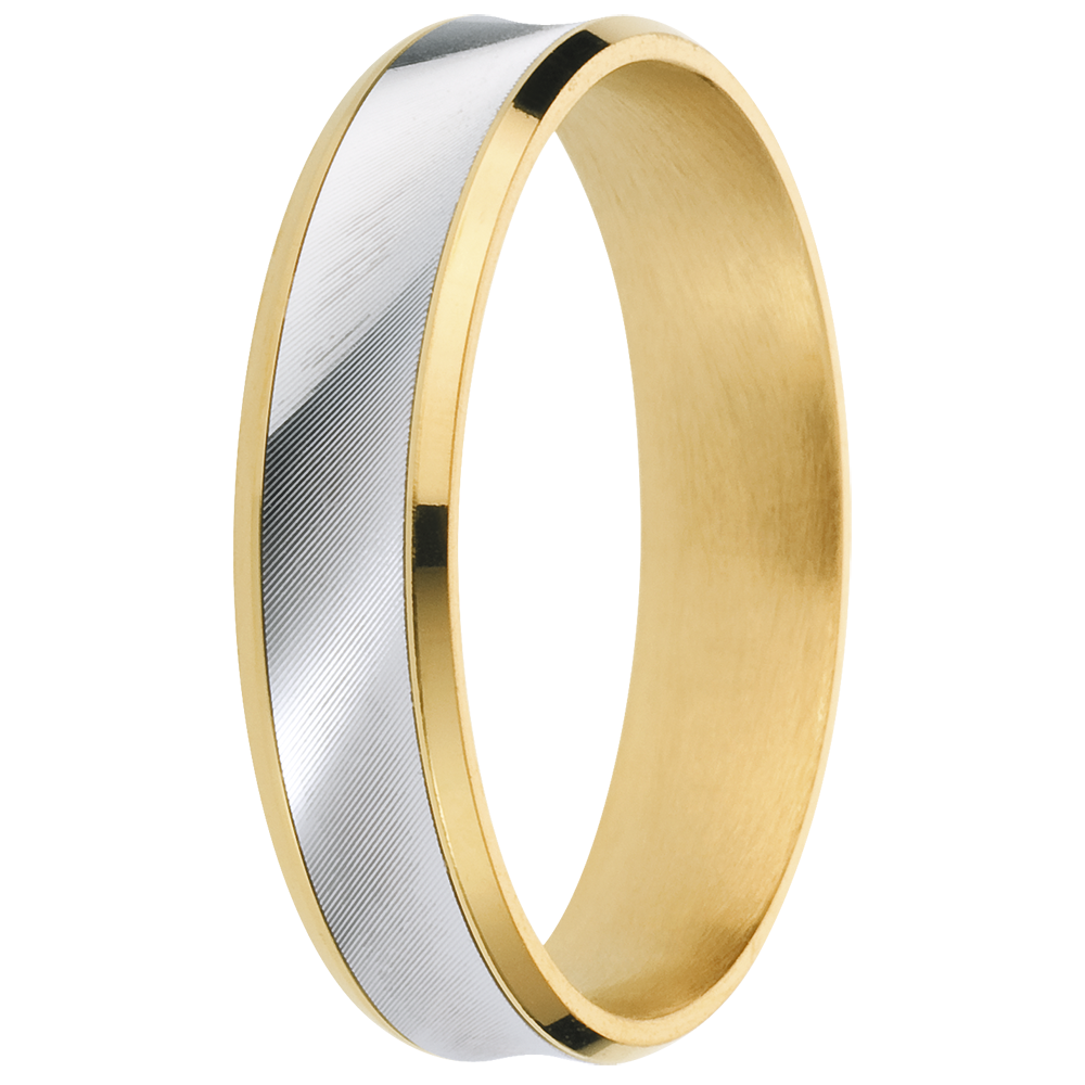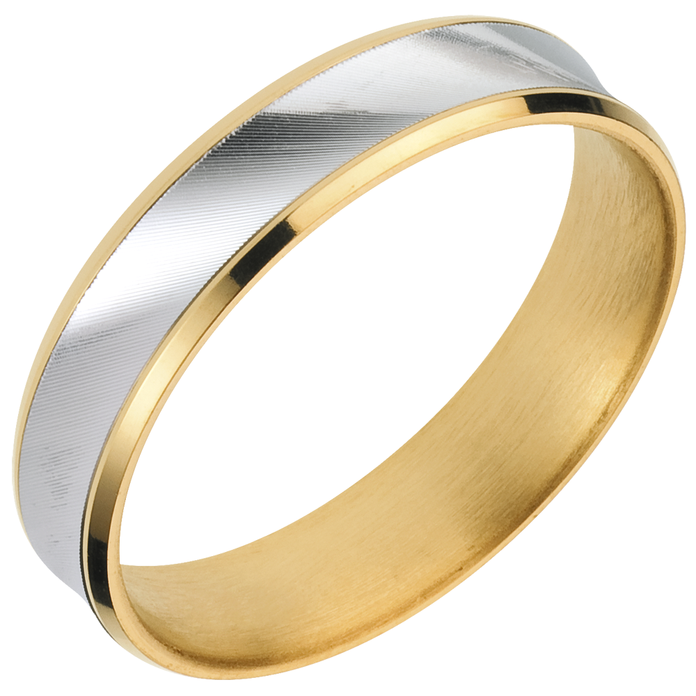 A minimalist ring, distinguished by its combination of yellow and brushed-white gold.