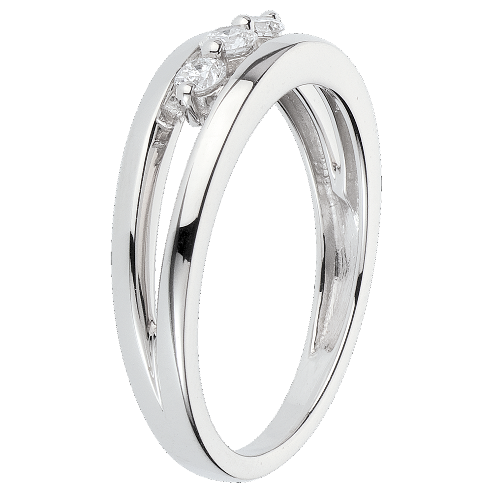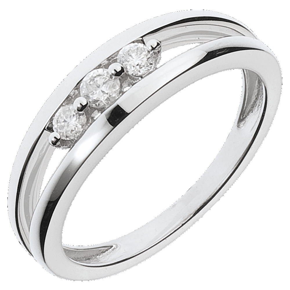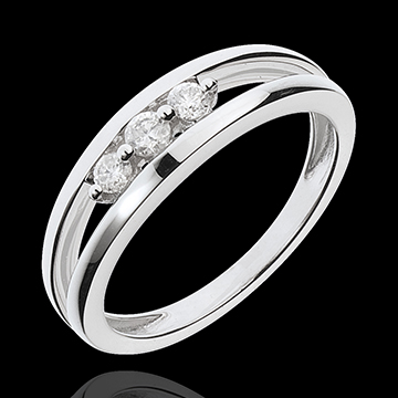 A diamond trilogy held in the gap between two white gold rings. A ring full of purity.
