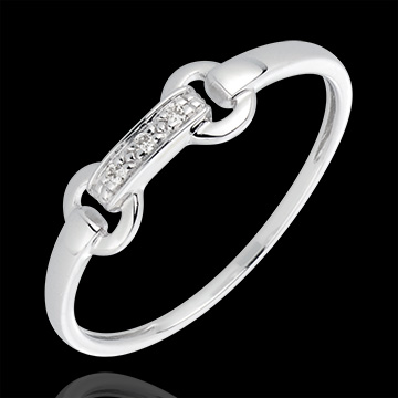A bit paved with diamonds attached to reins of white gold, all coming together to form an elegant multi stone ring.3 diamonds : 0.01 carat - White gold (18K Gold = 750/-): 1.05 g.
