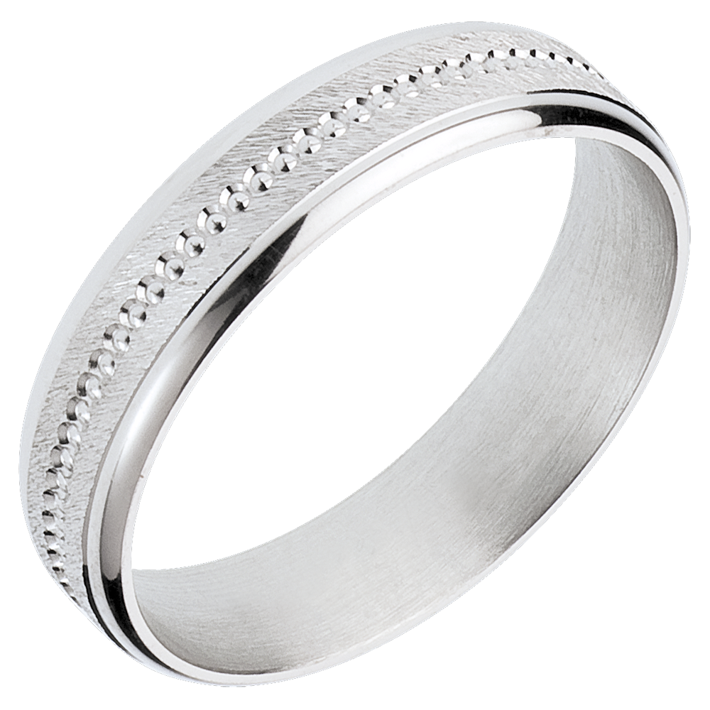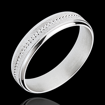 A delicate white gold ring, emphasised with a shiny stamped ring, with brushed section.