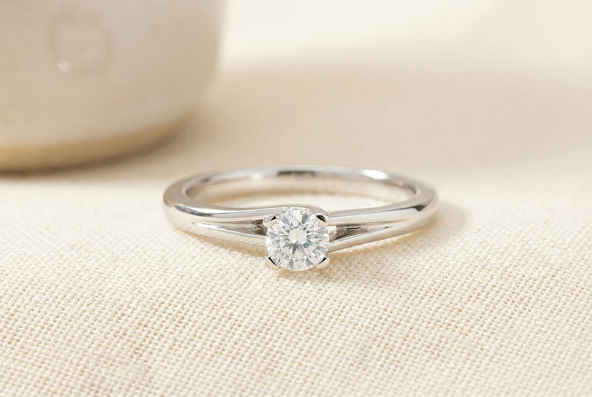 A white-gold setting symbolic of the connection of love, associated with marriage.