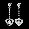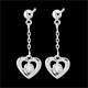 A small pretty heart holding a diamond is balanced gracefully on each of these dangling earrings.