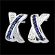 A white gold cross encrusted with sapphires and diamonds are shaped in half hoops.