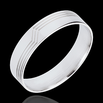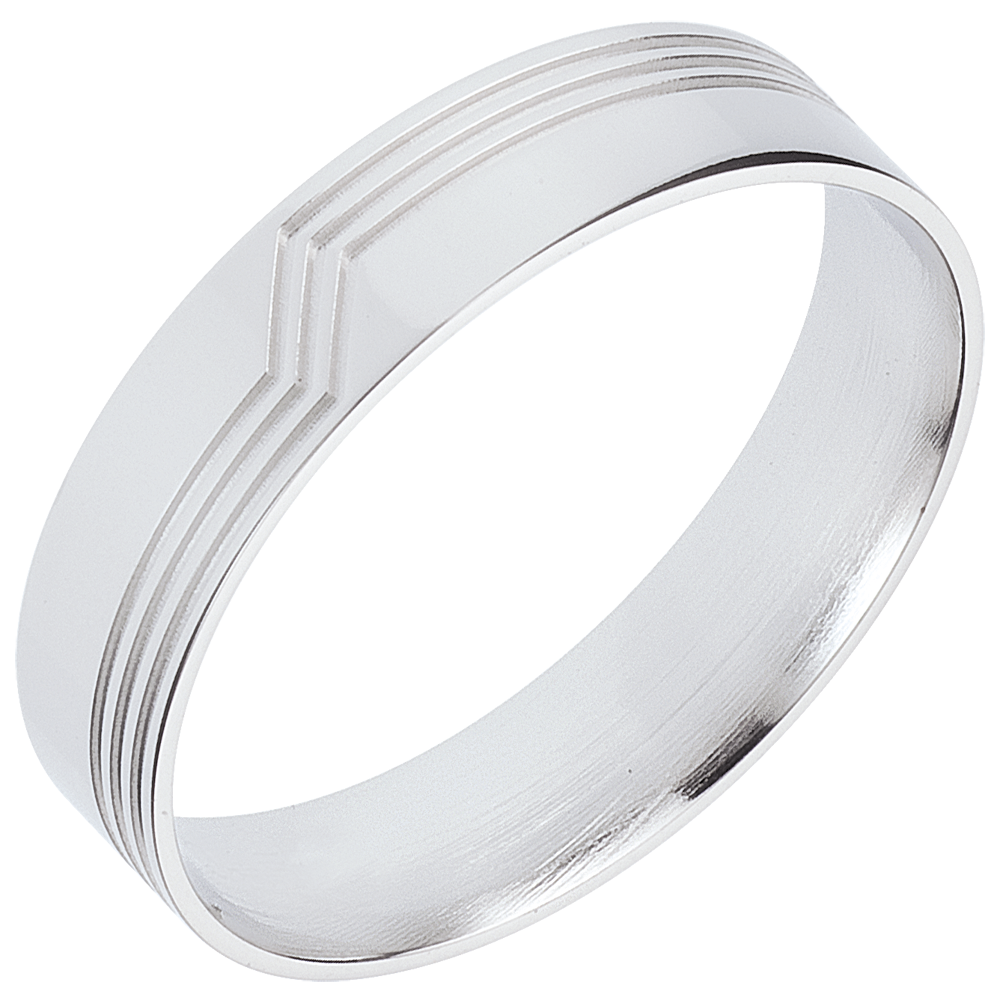 A subtle and graphic setting, engraved with an architectural, geometric design.