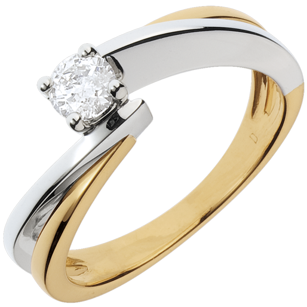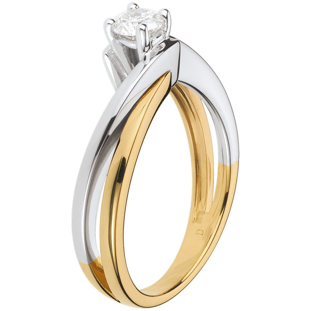 Solitaire Ring Precious Nest- Filament - yellow gold and white gold - 0.26 carat - 18 carats