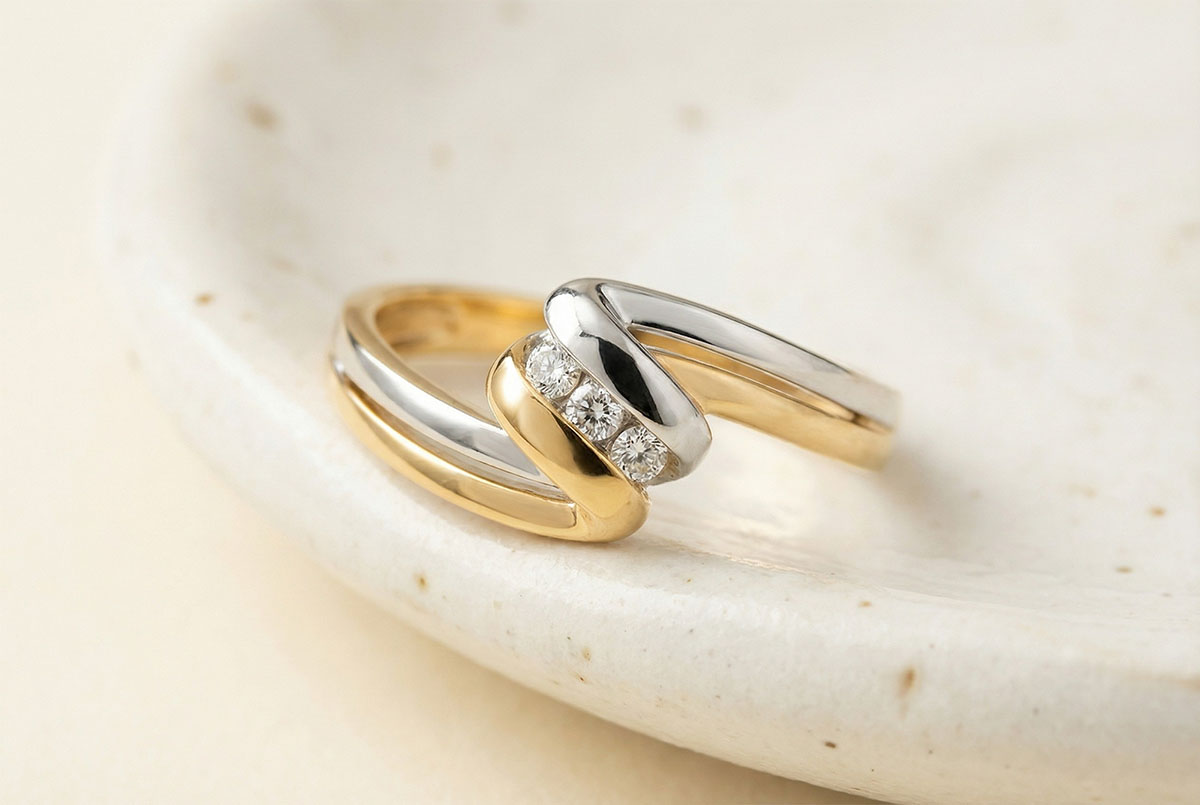 3 diamonds : 0.1 carat - White and Yellow Gold (18K Gold = 750/-): 2.8 g.