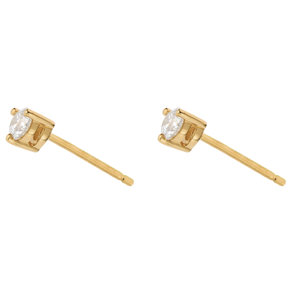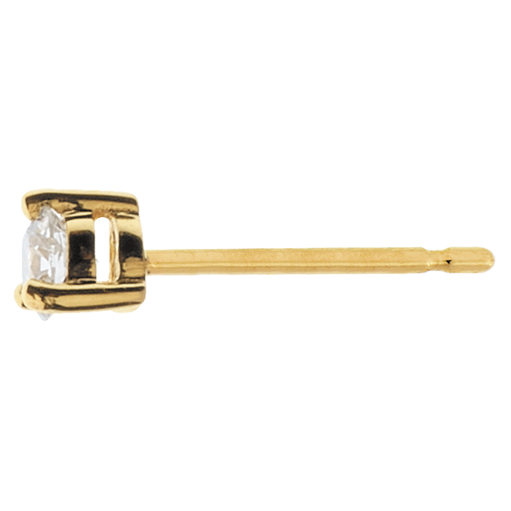 A solitary diamond mounted in yellow gold on each ear, the result is classic and endlessly fashionable.