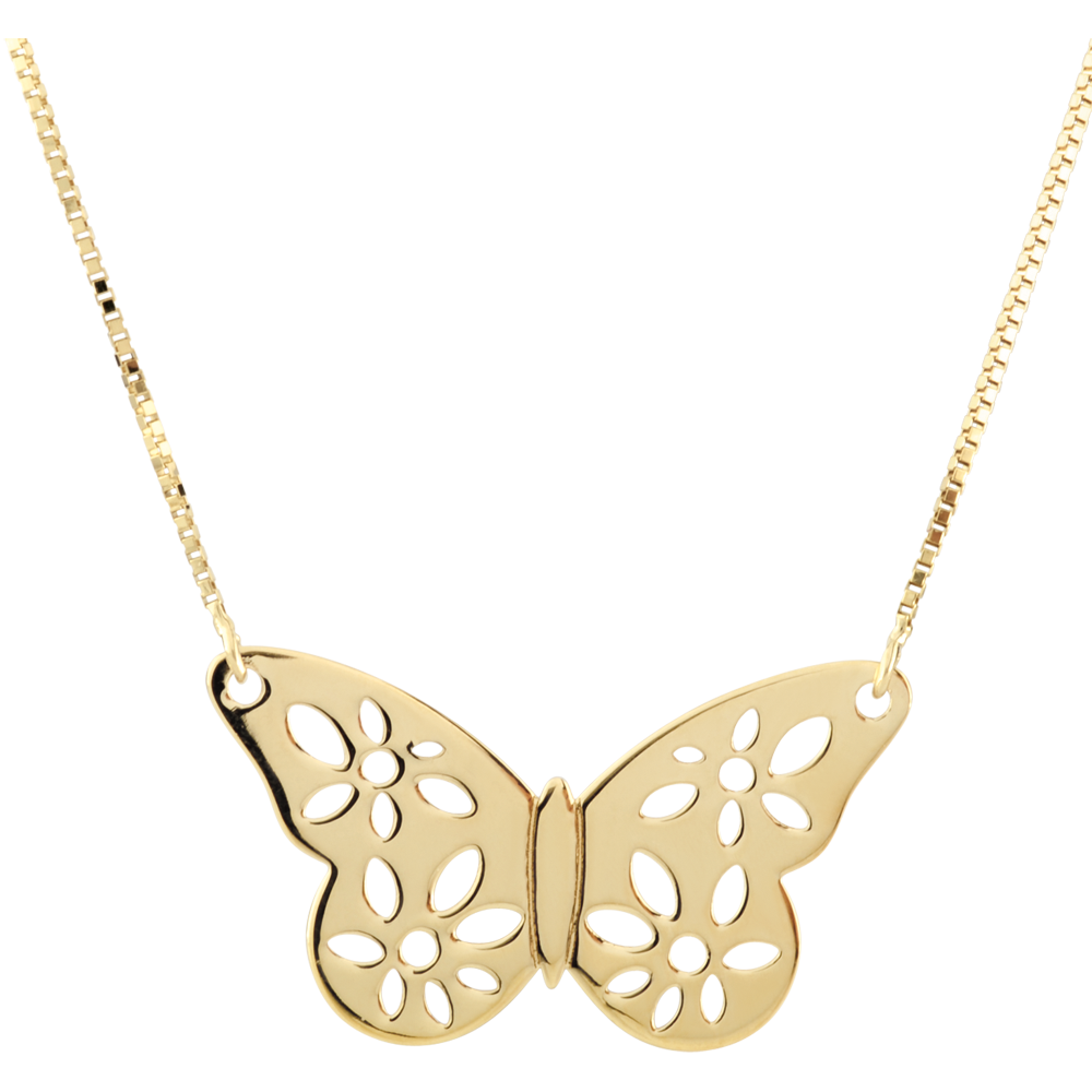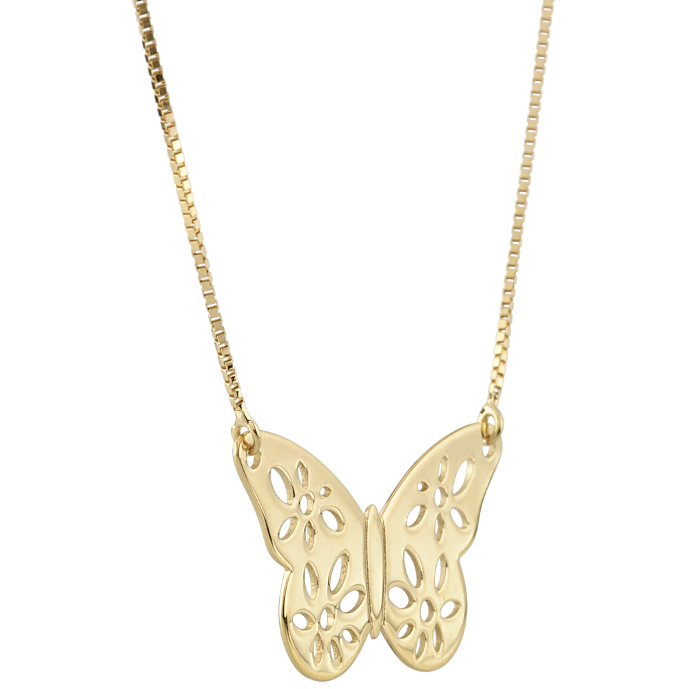 Yellow Gold Filigree Butterfly Necklace