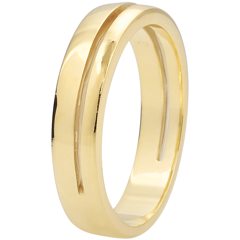 This wedding band with a grooved circumference has a diamond at its centre.