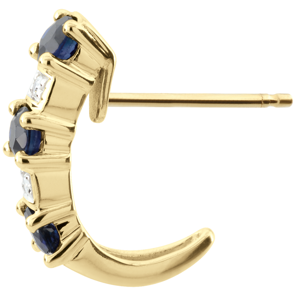 Classic and timeless half hoop Creole earrings combining gold, with diamonds and sapphire .