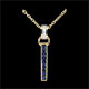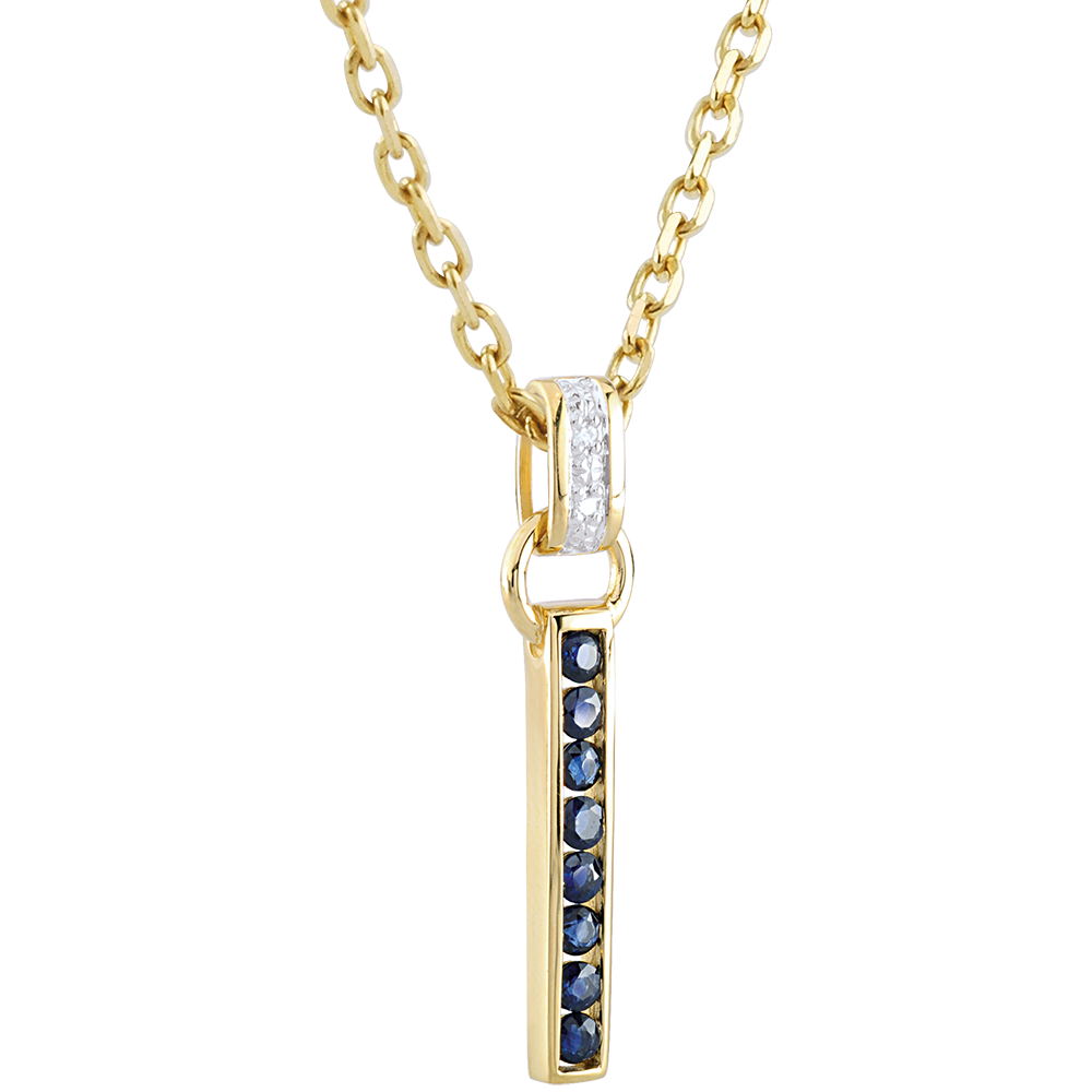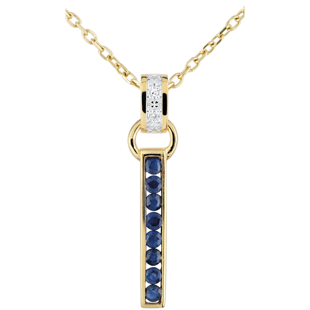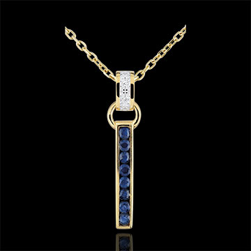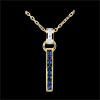 An elegant and timeless, band of sapphire, hanging from a loop with a diamond pendant ring.