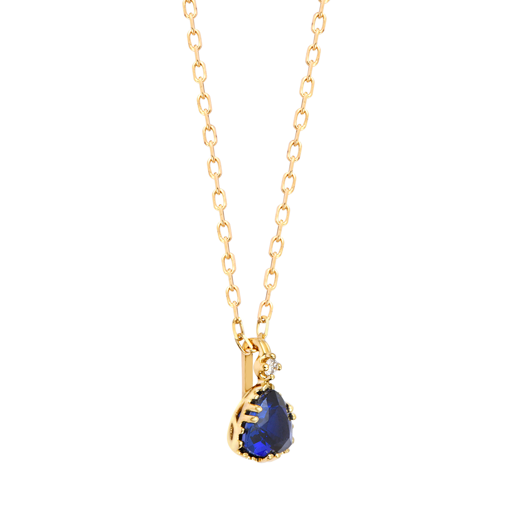 The Zéphyria necklace features a 0.5 carat synthetic sapphire of Very Good quality and a GSI certified synthetic diamond, ensuring remarkable brilliance and purity.